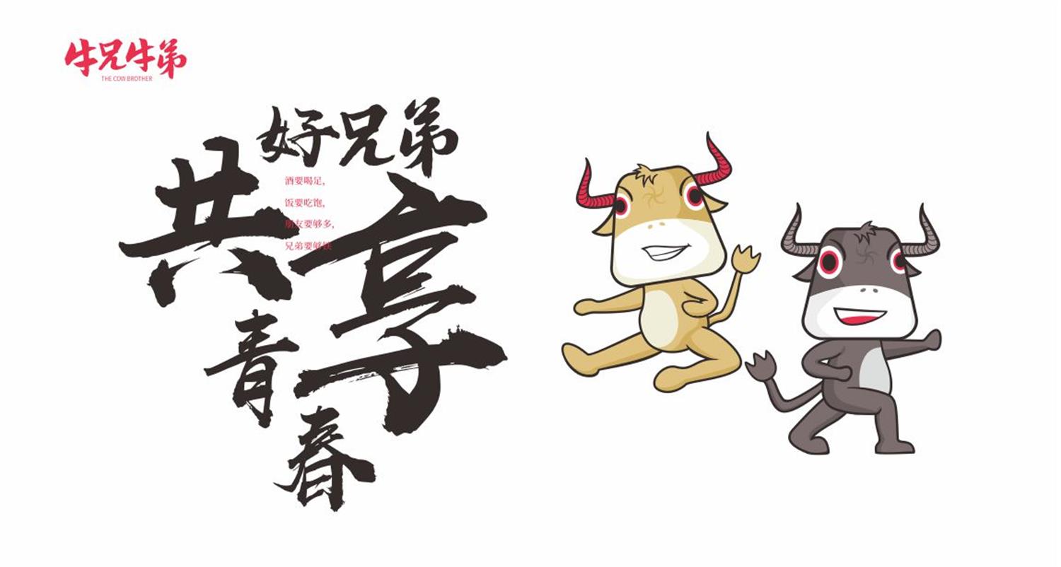 品牌视觉系统以红白黑三色为基调,配上精心打造的可爱又精神的卡通造型,辅以昂扬激荡的江湖兄弟情文案,给顾客视觉上强劲有力的冲击感。