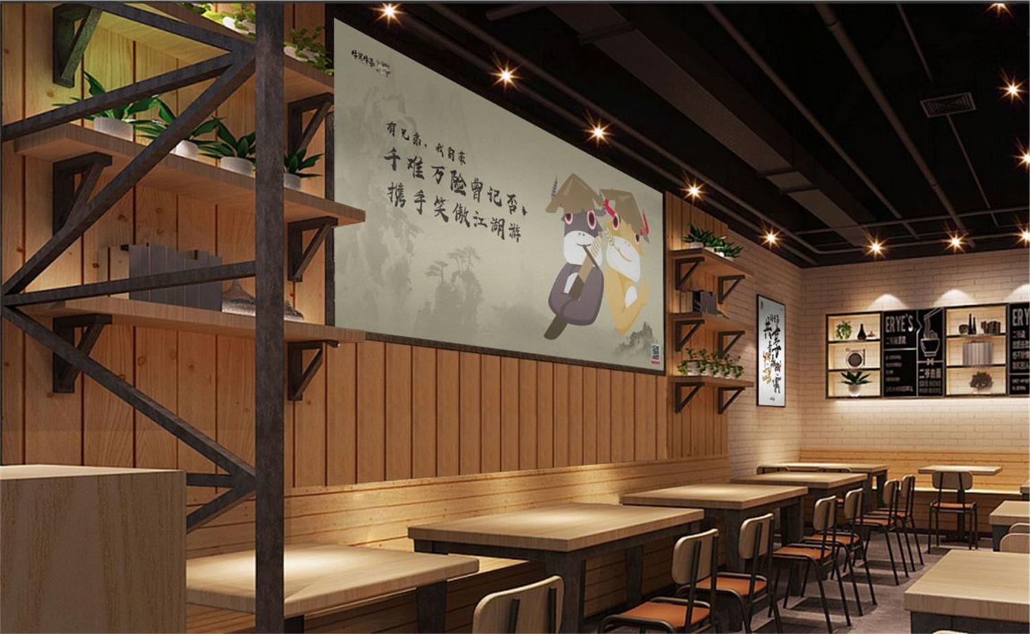趣味的卡通形象布置于四周,充满了浓郁的兄弟情怀和休闲的就餐体验,更加适合当下潮流和年轻人口味。