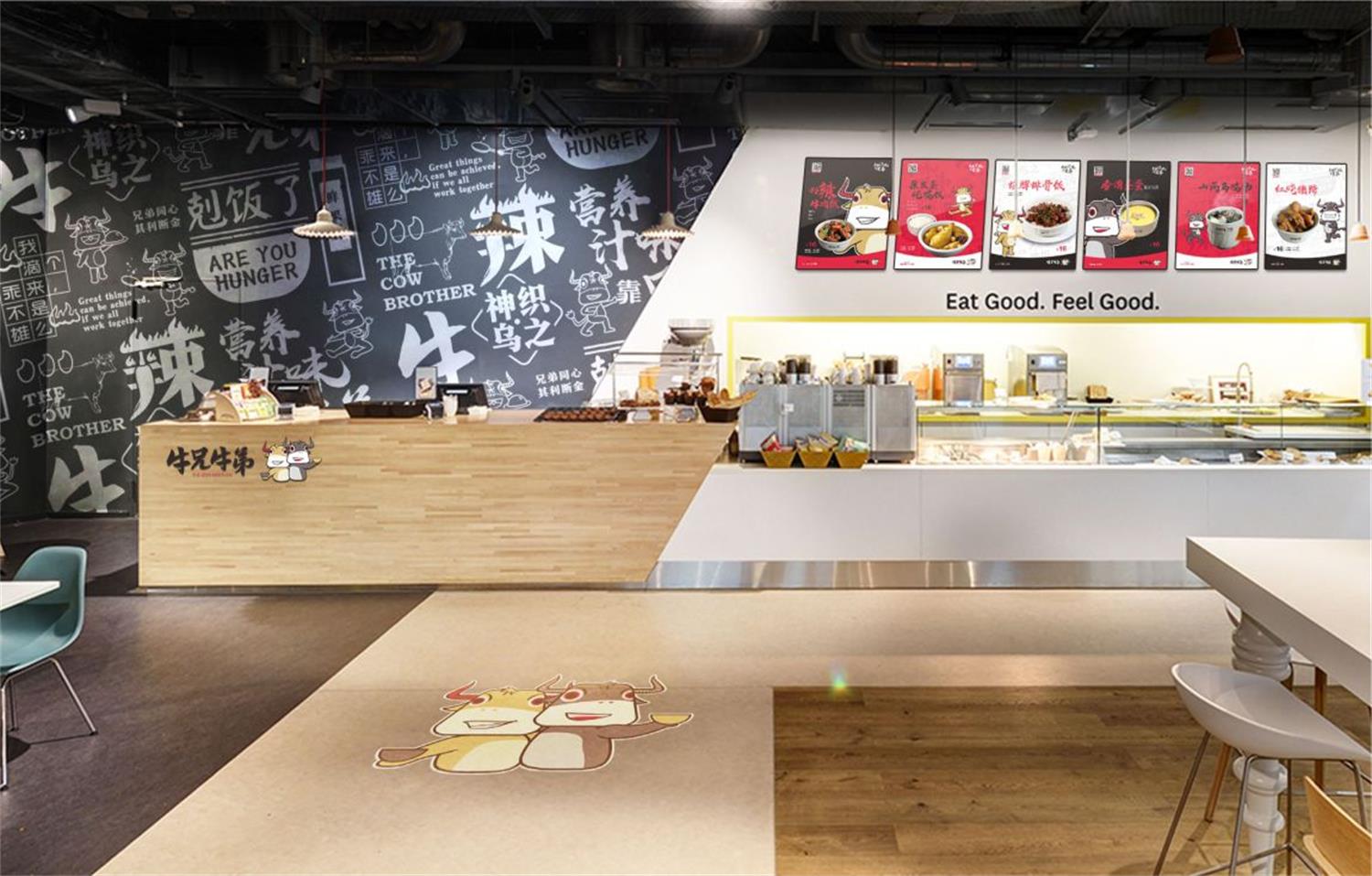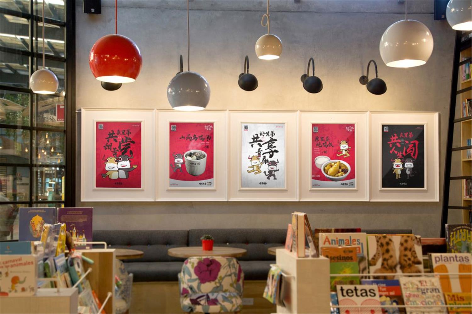 在店面空间的整体构思上,设计师揉合了当地俚语,精心绘制多副插画造型,形成了牛兄牛弟独有的视觉符号。