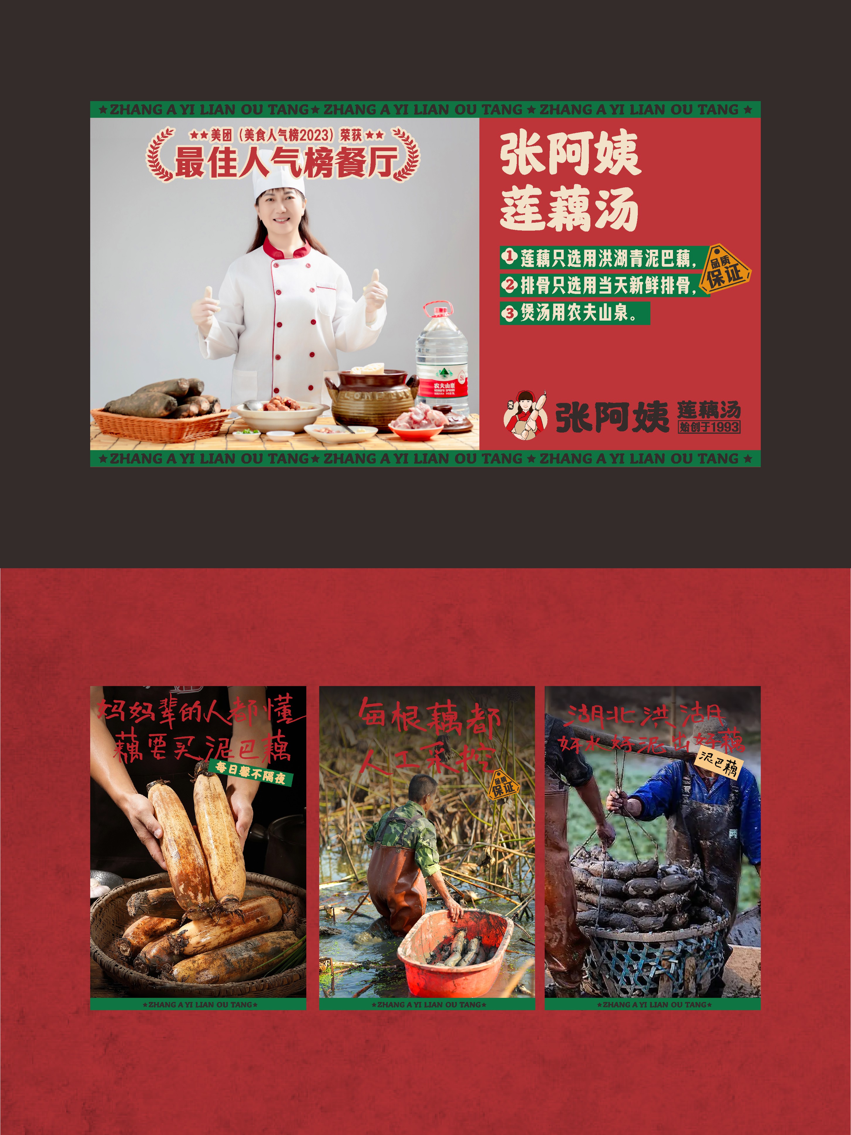 楚惠张阿姨莲藕汤,原名楚惠张阿姨热干面。单一的莲藕汤远不足以支撑一家门店的生存,产品选择多,便宜又实惠是当下餐饮门店存活的制胜法宝。因此此次升级我们建议张阿姨升级目前的产品结构,从产品菜单入手,添加家常快餐美食,如汤、粉、面、饭、小炒菜等多系列,丰富产品菜单,提升门店营业额。构思品牌超级战斗口号:饭香面香藕汤更香!核心围绕品牌成立时间、发源地、食材产品、产品选择、烹饪手艺和时间、味道、口感、营养,以及品牌的情感、理念、文化、价值观等等,多角度诠释为什么张阿姨莲藕汤“就是香”。